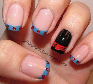 French tips inspired by the colors of her sleeves, and the accent nail inspired by her hair and red headband.