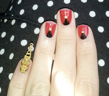 This look stared with Two coats of the amazing Annalicious. My camera really freaked out at this amazing shimmering shade of Tomato Red. I went for an edgy look with pointed half moons. For the pointy moons I used some scotch tape and Cult Nails Nevermore. I topped it all off with some Seche Vite then followed by Cult Nails Wicked Fast.